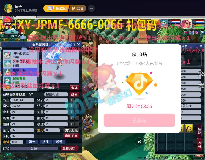 159无尽火域战队的老板小哥,昨晚在F哥直播间发福利,给观众们送出了2只建邺城的神兽!