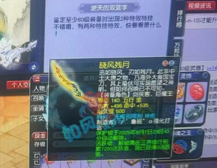 新出一把140无级别刀,并且附加了神佑特效,可惜的是伤害没怎么爆,并且也没有任何双加。